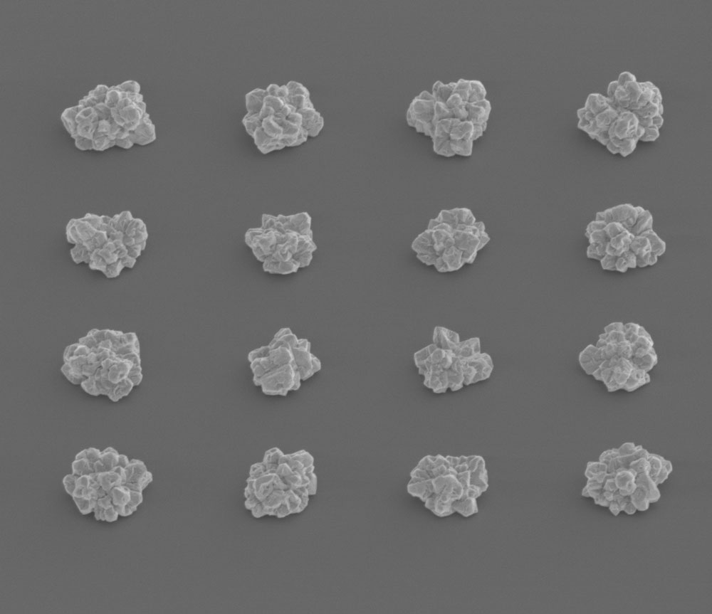 A scanning electron microscopy (SEM) image of the mushroom‐like gold nanostructures for interfacing with cardiomyocytes and neurons.